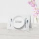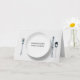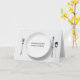 white dinner plate with silverware on soft textured background for thank you to host/hostess