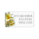Tropical plumeria / frangipani flowers custom return address labels. Medium size white labels with tall, printed text field. White Hawaiian flowers with yellow centres.