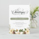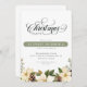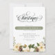 The swirly Christmas script together with the watercolor Poinsetta, berries and pine cones is a traditional Christmas designs. The white background makes it clean and elegant. The date is high lighted on a muted green colour as in the greenery.