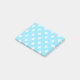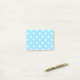 White polka crosses on baby blue post-it notes
