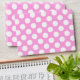 The design is white polka dots against a pink (FFA6E3) envelope. You can change the envelope colour. There is a coordinating FFA6E3 pink polka dot envelope.