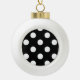 White Polka Dot on Black Pattern Ceramic Ball Christmas Ornament