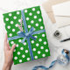 A wrapping paper built with a white polka dot pattern with a medium distance between the dots on a green background. Customize the green background among other options.