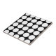 Bold white polka dots on a black background form a distinctive geometric pattern.