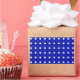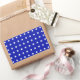 white polka dots on blue rectangular sticker