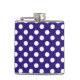 White polka dots on dark blue hip flask