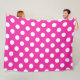 White polka dots on fuchsia fleece blanket