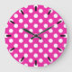 White polka dots on fuchsia large clock