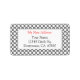 A custom new address label with friendly letters reading New Address in red and room for your address in a block font in black, with simple white polka-dots on a grey background. Customise it to change the fonts, background colours and more, and save your design for later.