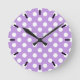 White polka dots on lilac round clock