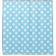 White polka dots on pale blue shower curtain