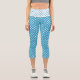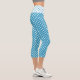 White Polka Dots on Peacock Blue Background Capri Leggings
