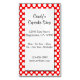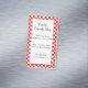 A custom magnetic business card template with script and friendly serif letters for your name, address, days and hours and more info on a clean white background with a drop shadow against a white polka dot pattern on red. Customise it to change fonts, add your own logo and more, even save your design for later.
