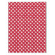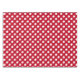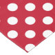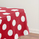 White polka dots on red tablecloth