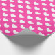 White polka hearts on fuchsia pink wrapping paper