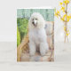 Lovely white Poodle in a setting of greenery. A calming, pleasant image on clothing, novelty and gift items!