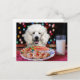 White Poodle is waiting by the milk and cookies either to greet Santa or to snatch one cute dog lovers Christmas holiday postcard