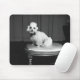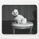 White poodle sitting on stool (B&W). Copyright: George Marks