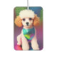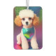 White Poodle with Cream Ears on Rainbow Sparkle Car Air Freshener