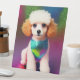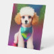 White Poodle with Cream Ears on Rainbow Sparkle Pedestal Sign