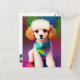 White Poodle with Cream Ears on Rainbow Sparkle Postcard