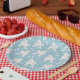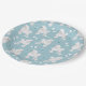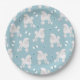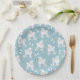 Cute White Poodles Pattern with Bows and Hearts on Delicate Swirl Pattern a Soft Blue Background Paper Plates.