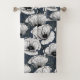 White poppies on navy bath towel set