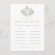How old were the parents-to-be? Guess the age of the parents with this fun and easy baby shower game. It features watercolor illustrations of a white pumpkin, greenery and white roses with a matching greenery pattern for the back of the card. Personalise by adding names of the parents-to-be.