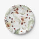 White Pumpkin Rustic Fall Leaves Pattern Paper Plate