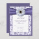 The text on this purple and white floral damask white gerbera daisy wedding reply card is fully customisable. To change it use the personalise option. For more extensive text changes, such as changes to the font, font colour, or text layout, use the customise option. You could also use this card as a reception, direction, or accommodation card with changes to the text.