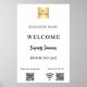 A white background. Personalise and add your company name, business logo, text, room number. QR code to your website, event program etc. Black text.