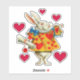 Custom-cut vinyl sticker with a vintage Alice in Wonderland image of the White Rabbit in full regalia on white surrounded by whimsical red hearts. See matching square sticker, favour bag, favour box, heart-shaped favour tag, gift bags, label and wrapping paper. See the entire Wonderland Sticker collection in the INVITES | Stickers & Labels section.