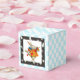 Square classic-style blue and white chequerboard favour box with a vintage image of Alice in Wonderland's white rabbit in full regalia in a black-and-white Wonderland frame. See the entire Wonderland Favour Box collection in the PARTY FAVORS section.