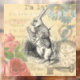 Alice in Wonderland White Rabbit illustration - the White Rabbit is the endearing bunny rabbit character from the 1865 book by Lewis Caroll, Alice's Adventures in Wonderland. The white rabbit says, "I'm late, I'm late, for a very important date." Our gift is based on the original book's image, from the mid-1800s, the white rabbit checking his watch as he's running to his "very important date." The White Rabbit collage is a beautiful image for Alice in Wonderland themed party invitations and gifts.