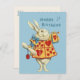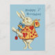 Birthday postcard inspired by John Tenniel's depiction of The White Rabbit, when he appears as the herald of the King and Queen of Hearts.