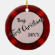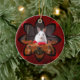 First Christmas ornament for your cute adorable white rabbit. Name Year and First Christmas appear on one side, and the other has a photo of a white rabbit perched on an antique wooden trunk. In true holiday spirit, he wears red socks.