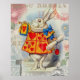 The Classic White Rabbit from Alice in Wonderland - Alice's Adventures in Wonderland features the white rabbit. This classic image of the white rabbit is from the original book, showing the rabbit blowing a horn, wearing a uniform of red hearts. The white rabbit is seen throughout the Alice in Wonderland story, from the rabbit hole, to the Mad Tea Party with the Mad Hatter. The alice in wonderland collage is a beautiful image for party invitations and gifts. Written by Lewis Caroll in 1865, Alice falls down the rabbit hole and is involved in a wonderland of fantasy.