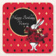 White Rabbit in Red Birthday Square Paper Coaster