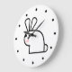 White rabbit with beady black eyes and a pink nose surrounded by black dots. Very cute, stylish and trendy wall clock. Great gift for yourself or that special someone you like spending time with.