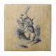 Antique illustration from classic children's book Alice in Wonderland. The White Rabbit is overlay on a background of burlap.