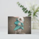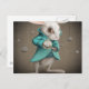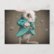 white rabbit with clock postcard