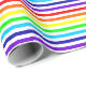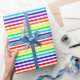 Wrapping paper with a bold stripes design. The colours alternate between white and rainbow stripes (red, orange, yellow, green, blue, indigo and violet).