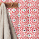 Elegant ceramic tile design featuring a seamless pattern made of geometric shapes in red and black on white background.