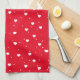 White & Red Hearts Pattern Tea Towel