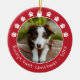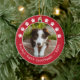 White Red Paw Prints Pet's First Christmas Photo Ceramic Ornament
