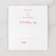 A modern and elegant. Personalise and your names and the wedding date. Add your guests names and their table number by hand. White background, red text.