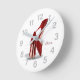 Fashionista modern glamorous wall clock featuring a dark red glitter high heels pair of women shoes with light grey figures over a clear white background. ++++++ Easy to personalize with her name. it can be a pretty gift for a fashion lover, lifestyle blogger, boutique owner, boss lady birthday, bridal shower, Christmas.