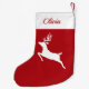 White Reindeer Silhouette On Red And Custom Name Small Christmas Stocking