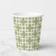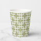 White Retro Chic Squares Pattern On Olive Green Paper Cups