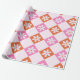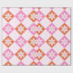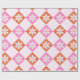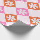 White Retro Flowers on Orange and Pink Diamonds Wrapping Paper